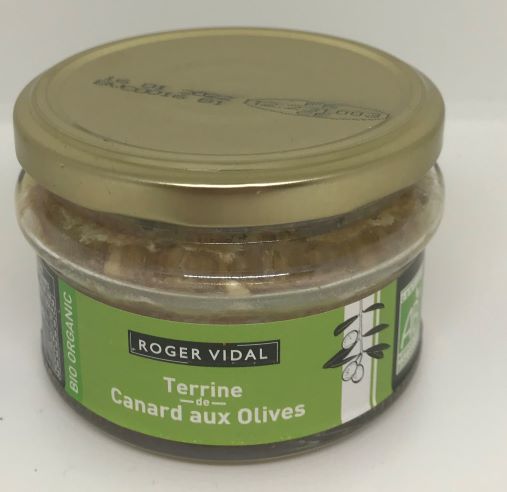 Terrine de canard aux olives bio 130g, excellent produit de la gamme Roger Vidal.