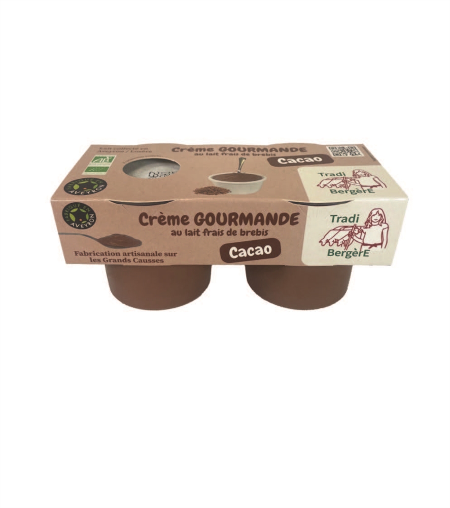 La crème dessert gourmande au bon lait de brebis bio et cacao de l'Aveyron promet une délicieuse alliance entre la richesse du lait de brebis biologique et la saveur irrésistible du cacao. Cette association de qualité et de gourmandise offre une expérience gustative unique, mettant en valeur les délices du terroir de l'Aveyron.